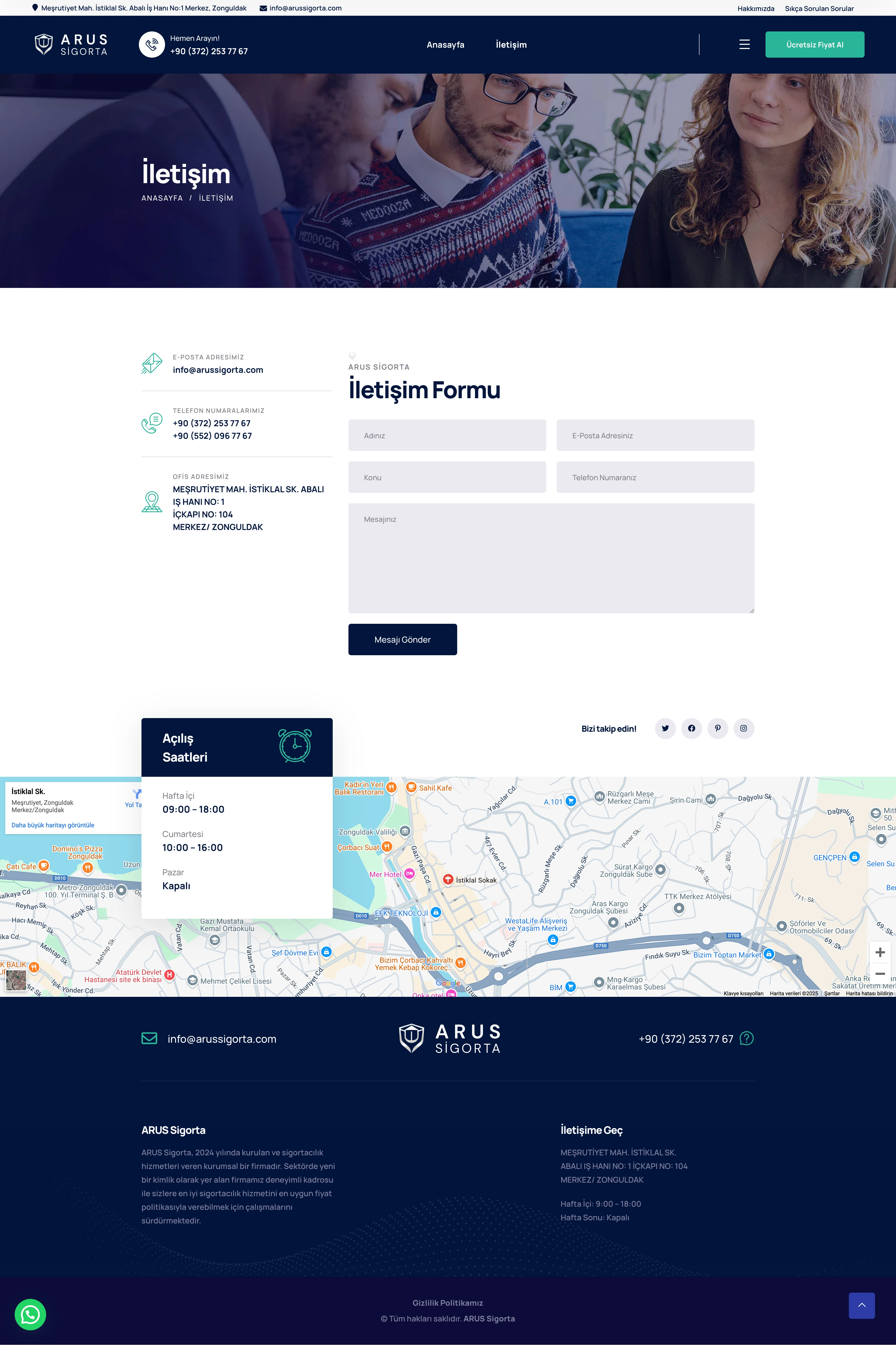 🔹 Proje Adı: Arus Sigorta Web Tasarımı