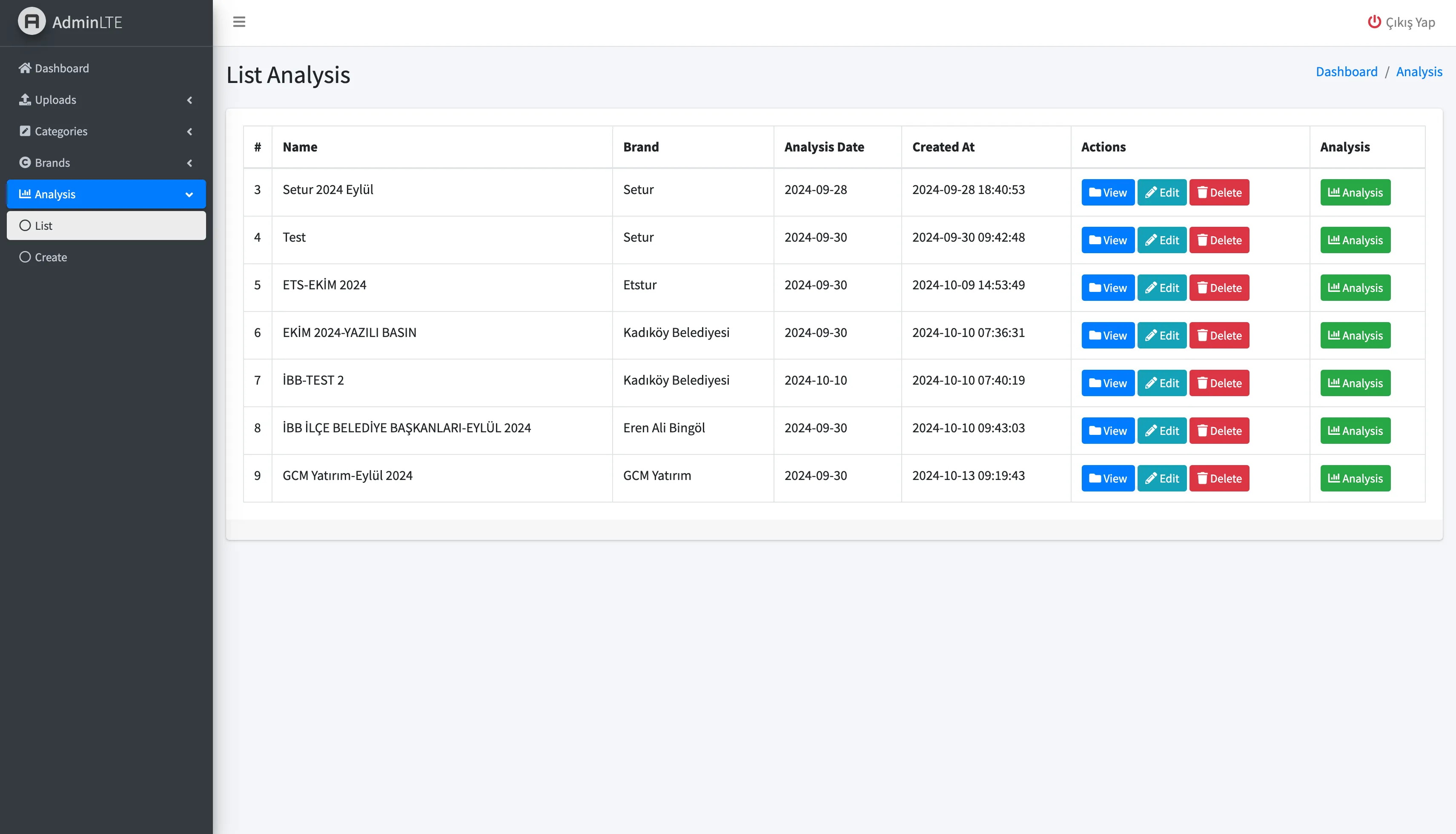 ANALİZ LİSTESİ