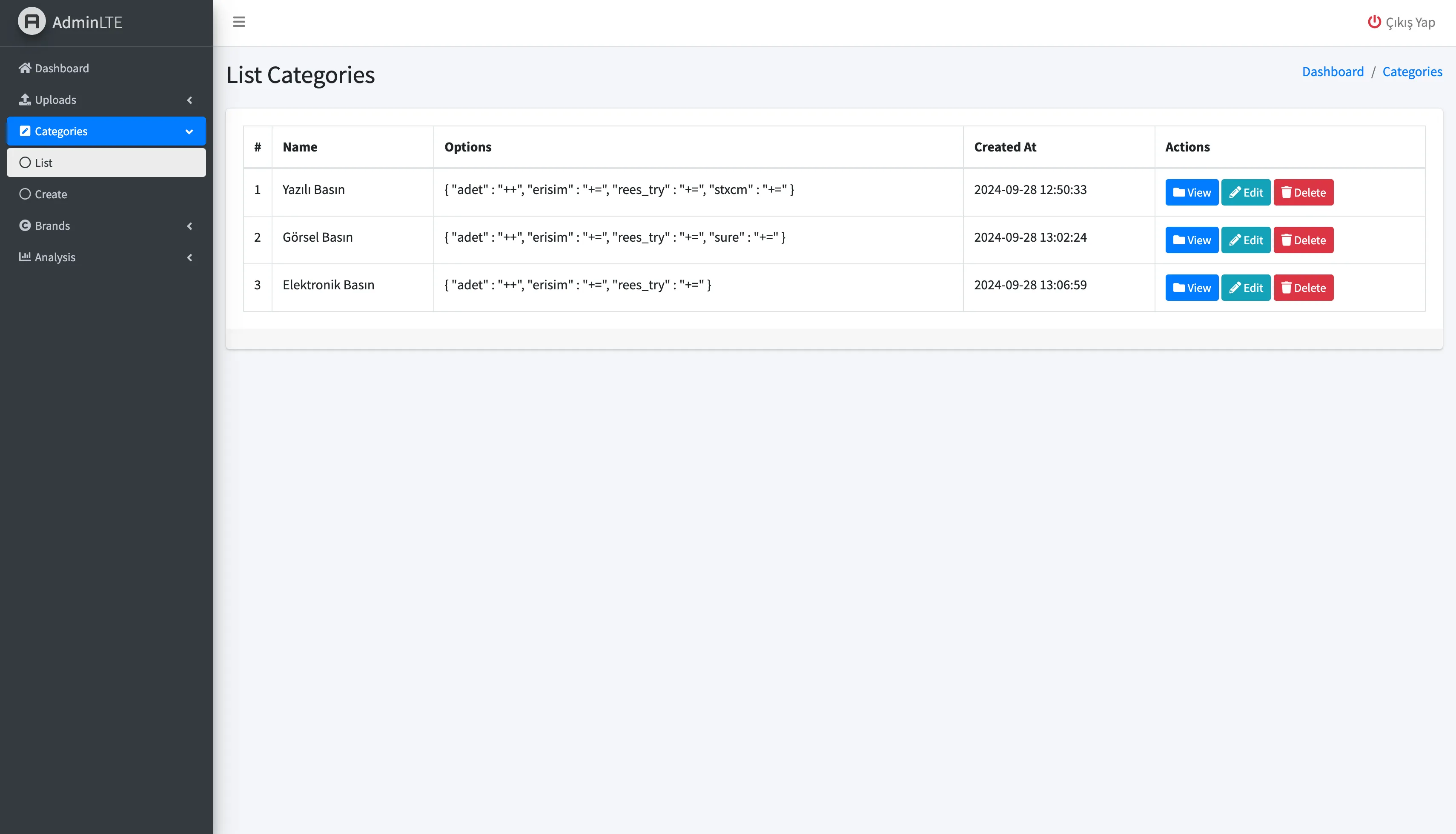KATEGORİ LİSTESİ
